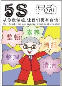 5S是5个日文词汇的首音:Seiri(整理),Seiton(整顿),Seiso(清扫),Seiketsu(清洁)和Shitsuke(修养)。